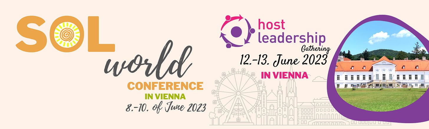 The SOLWorld 2023 conference and Host Leadership Gathering are both in Vienna this year. Come and join me! Act soon if you’d like to propose a workshop or conversation topic - closing this Friday 17 March.
